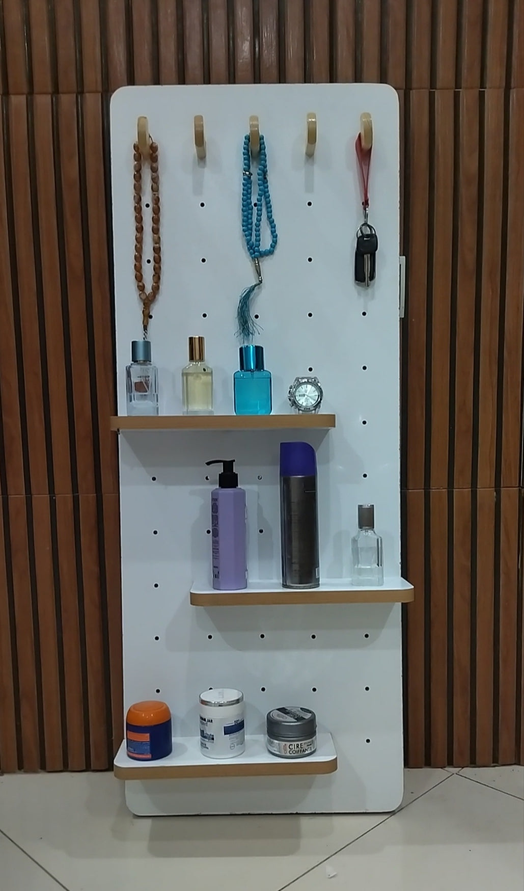 تصميمها الأنيق يضيف لمسة جمالية لمدخل البيت أو غرفة النوم، بينما يمنحك زجاجها عالي الدقة رؤية واضحة لإطلالتك اليومية لتختاري ملابسك بثقة. كما تحتوي على خطافات عملية لتعليق الحقائب، الشالات أو الإكسسوارات بشكل منظم بعيداً عن الفوضى.